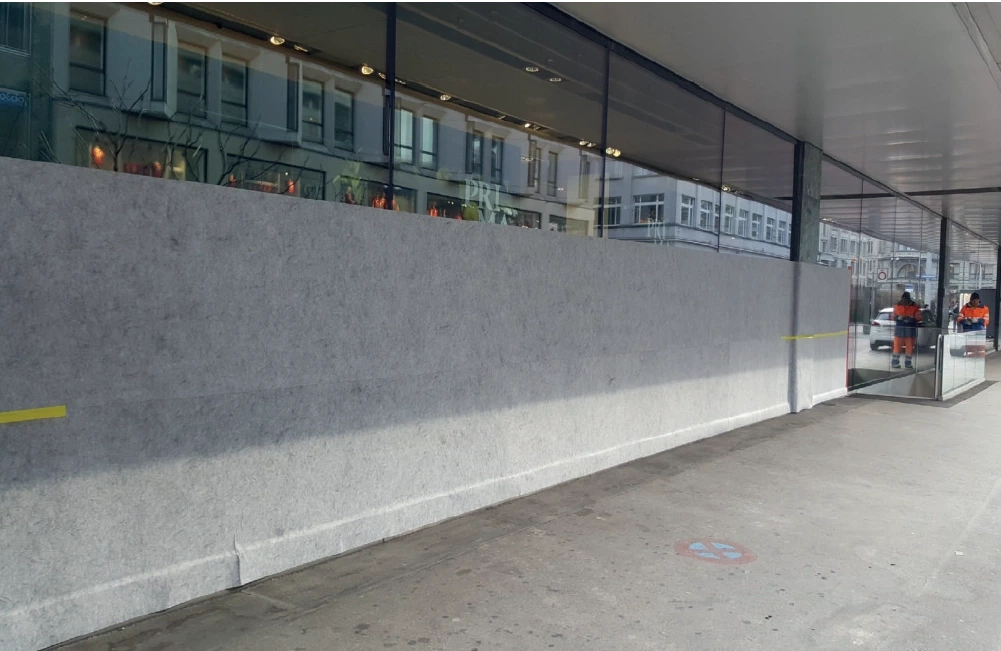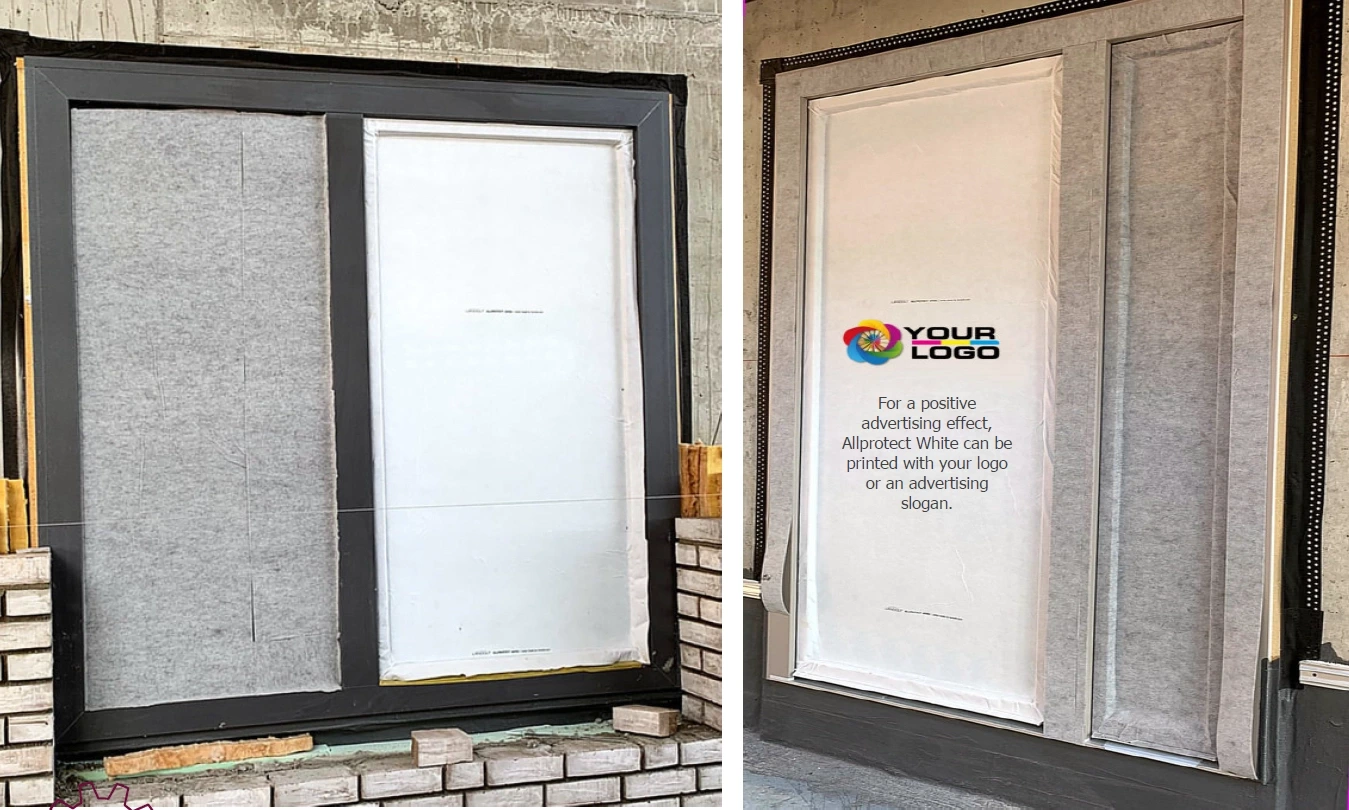 High-quality protection solution for glass surfaces. ALLPROTECT™ White self-adhesive, translucent protective fabric can be used to protect vertical, smooth surfaces from dirt (plaster, paint, dust, etc.) and scratches. It is highly adhesive, moisture-proof, and particularly suitable for glass surfaces such as facades, windows, and doors. Allprotect White can also be printed with your own company logo.