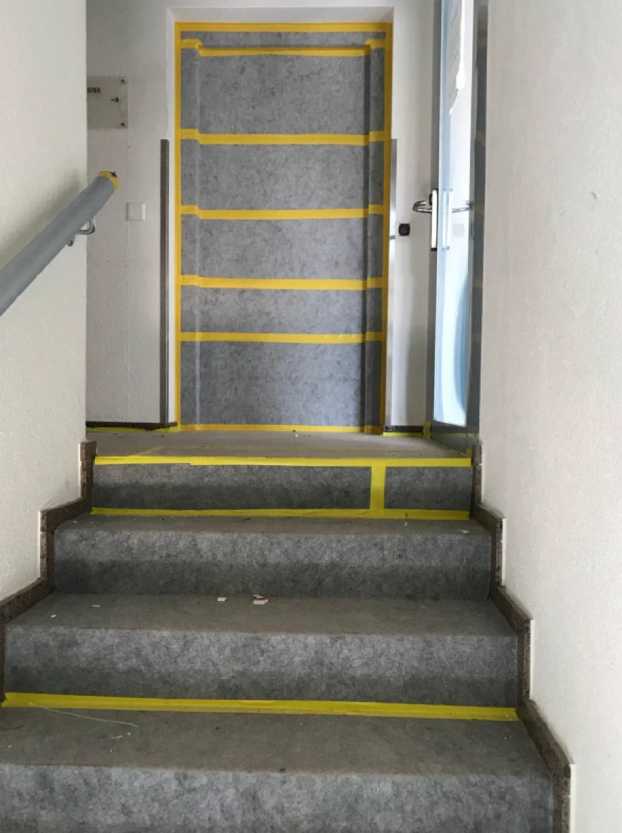 High mechanical protection even for long-term use. Ideal protection for stairs. Protection for concrete prefabricated elements, entrance doors, etc. As a temporary dirt trap.